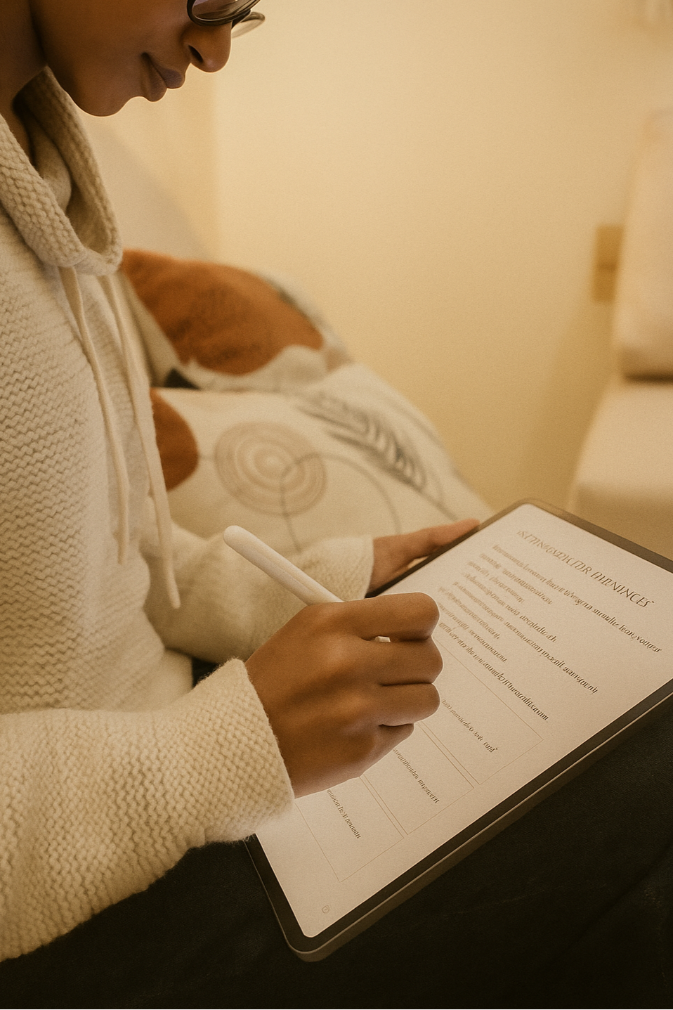 You’ll receive a guided Reset Notebook to use throughout the day, with prompts, reflection spaces, and framework outlines to help you capture your own insights and clarity.